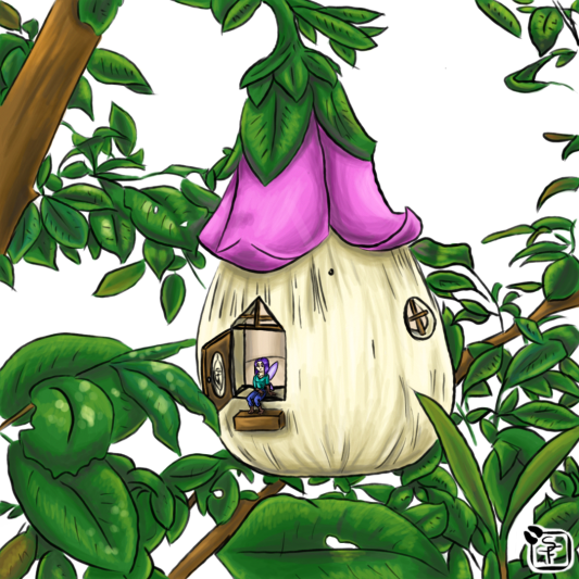 I had a lot of fun playing with how the light come through the leaves on this one. I really wanted to push my boundaries especially since I will be coloring all of those other line arts soon! (Just need to get motivated.) I decided to add a little resident to the house. I absolutely love her. She reminds me of what our DnD Character’s Fae would look like if she was a little more modern times! I hope you guys enjoy this!